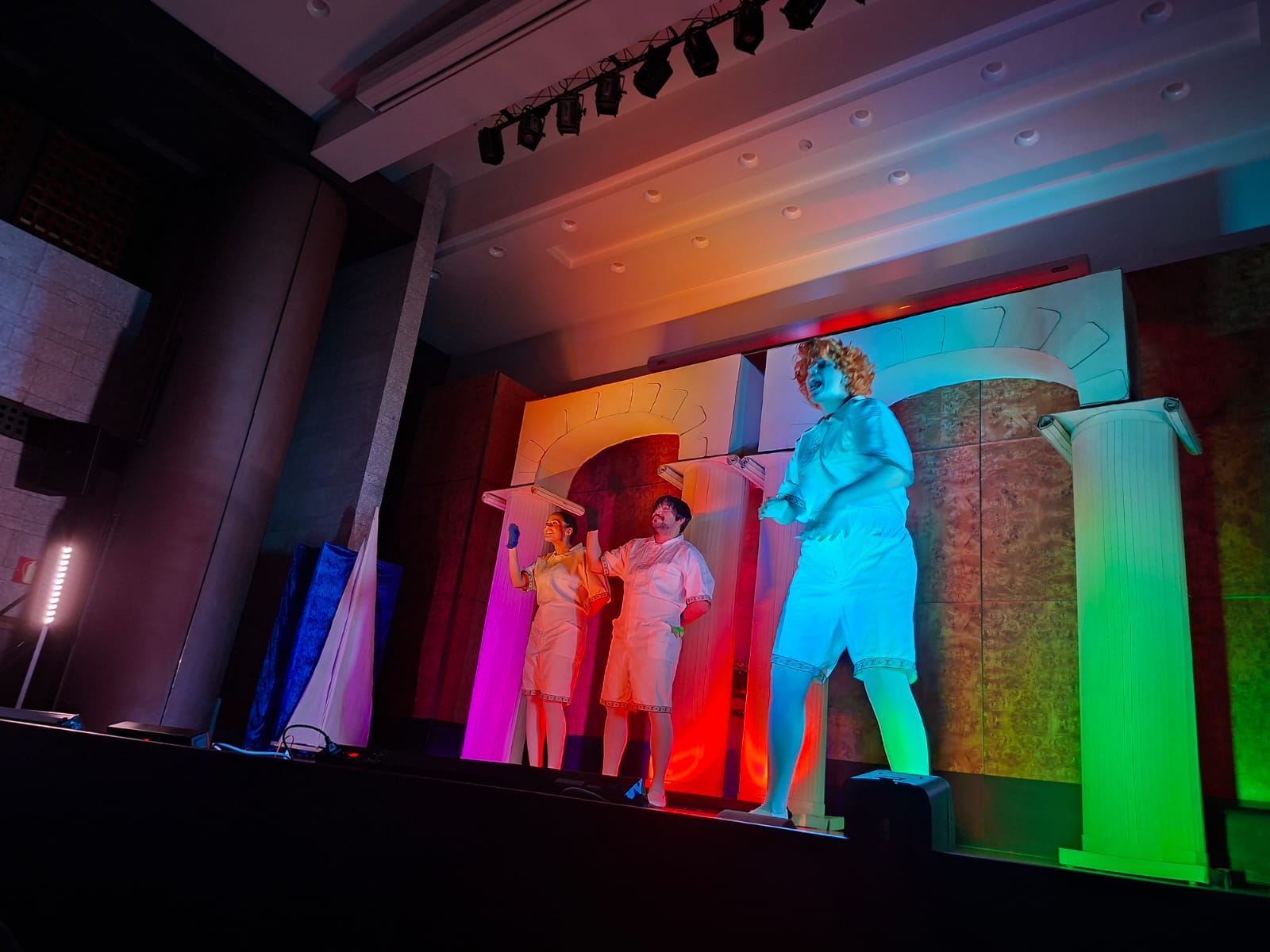 El pasado 30 de enero en el salón de actos de la Facultad de Filología se representó Los Gemelos, de Plauto en el seno del Festival de Teatro Grecolatino Juvenil de Las Palmas. Fue un éxito en todos los sentidos: un éxito de acogida por cuanto asistieron 547 alumnos de Bachillerato de las materias de Latín y Griego y 43 profesores de 20 centros en total; y un éxito de representación, ya que tanto por su puesta en escena, como por la adaptación del texto, que ha sido bastante fiel al original, ha merecido el aplauso del conjunto del profesorado y público asistente.